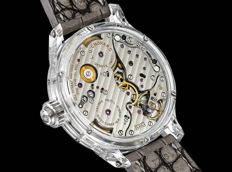 為了使色調得到充分發展,直徑42.5毫米,厚度為11.55毫米的表殼也采用剛玉晶體加工而成。這種技術解決方案實際上有助于時計的美學。兩只指針指向由半透明緞面成品材料制成的小時軌道,以裝飾標記。在2點鐘位置,一個指示器顯示腕表和音樂復雜功能的動力儲存。6點鐘位置的小秒針完成時間指示。因此,沒有表盤和藍寶石表殼,在533個組件的幫助下,L.U.C 08.01-L手動上鏈機芯的360度全景令人印象深刻。有了這樣一個開放的建筑,人們怎么能不驚嘆于錘子在運行時的敲擊聲呢?這種復雜的機芯也匯集了它的性能。除了60小時的動力儲存外,它還具有瑞士官方天文臺測試機構(COSC)認證的精密計時功能。L.U.C Full Strike藍寶石腕表也滿足了日內瓦一品紅的要求。